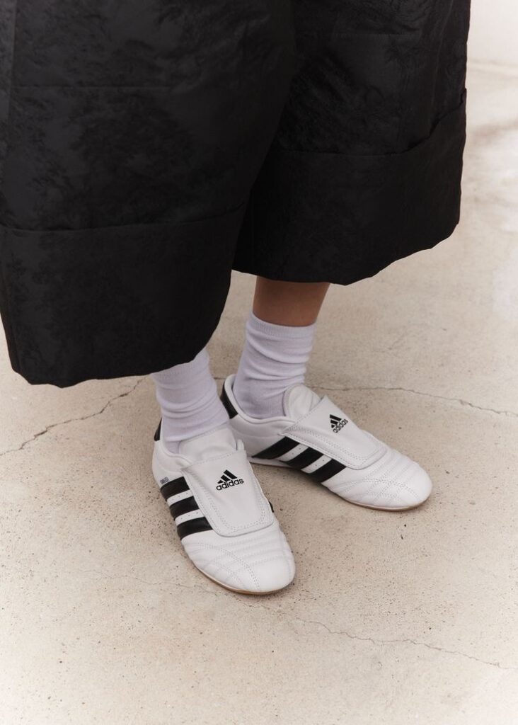 Модели Adidas Samba и Gazelle больше не актуальны. Теперь модное сообщество объявило охоту за кроссовками Adidas Taekwondo, которые появились на рынке еще в 1980-х годах. Сейчас герои стритстайла и модные инфлюенсеры носят их с мешковатыми шортами и носками в духе coquettecore или классическими брюками и пальто. В любом случае кроссовки смотрятся свежо и небанально.