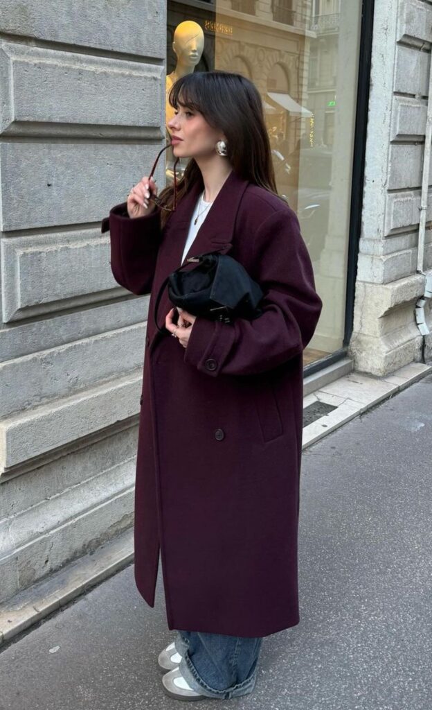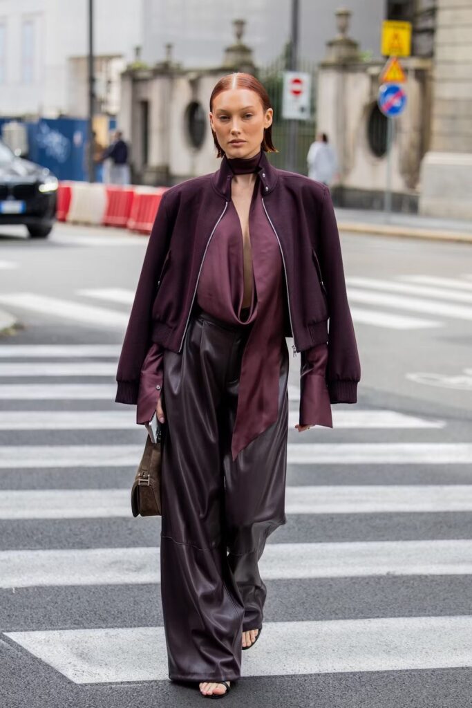 Для всех фанатов цвета бургунди у нас есть две новости: плохая и хорошая. Плохая заключается в том, что темно-бордовый оттенок больше не актуален. А вот хорошая новость намекает, что его место в этом сезоне займет благородный сливовый цвет. Бери пример с Хейли Бибер и уже сейчас займись поиском того самого пальто, жакета или сумки.
