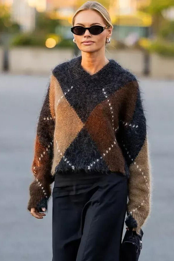 Принт с акцентными ромбами, кажется, помнят все еще со школьных времен. Тогда этот ненавистный паттерн был на темно-синих и бордовых свитерах, жилетках и джемперах школьной формы. Однако в новом году ромбы аргайл возвращаются на фэшн-арену и в нашу жизнь. Тренд уже протестировали Белла Хадид и сотни инфлюенсеров по всему миру. Кстати, первой этот микротренд из соцсетей подметила автор Telegram-канала «Дьявол носит H&M» Алена Горячева.