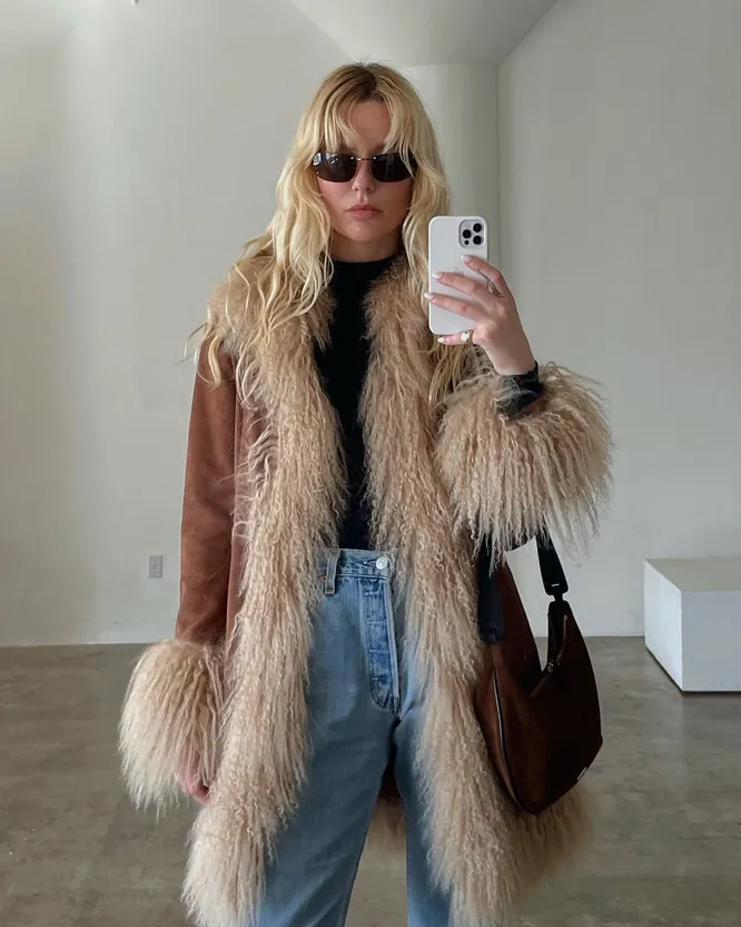 Обычные зимние пуховики надоели? Тогда смело выбирай на холодный сезон афганское пальто. Главная «фишка» такой модели – отделка из пушистой овчины на рукавах, вороте и вдоль застежки. Афганские пальто были особенно популярны в 1970-х, когда бал правили хиппи. Сейчас фэшн-сообщество вновь обратило внимание на эту модель верхней одежды. Герои стритстайла предлагают носить пальто с голубыми джинсами, облегающими топами и ботильонами. Получается трендовый образ в духе Cool City Girl.
