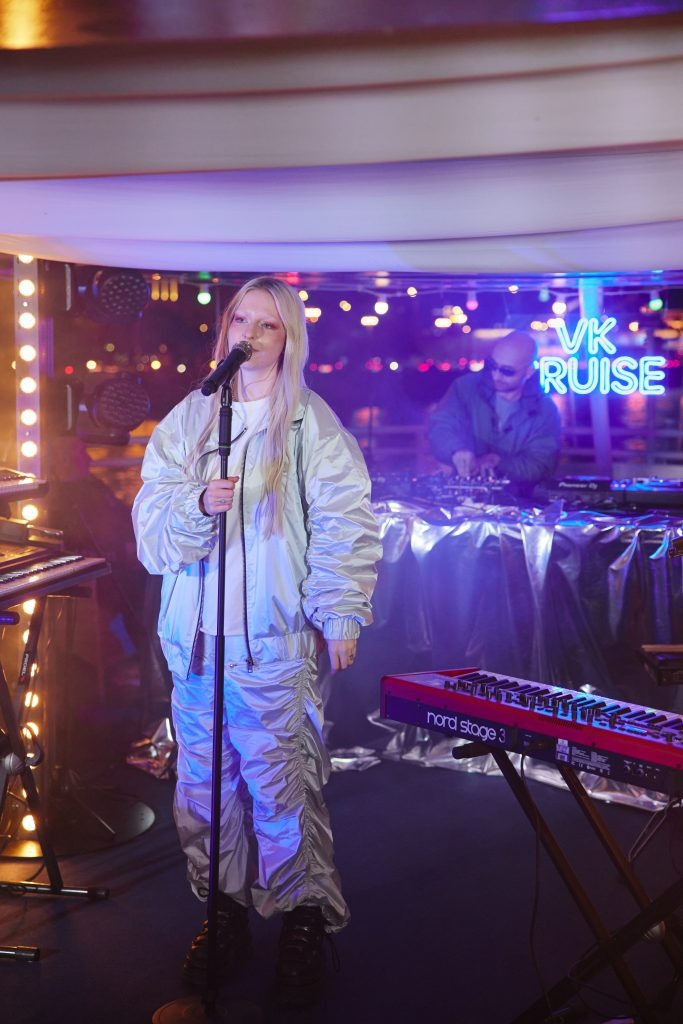 Команде VK при поддержке небезызвестного Филиппа Лобачева, в этот вечер отвечавшего за guest management. Не так уж часто на одном мероприятии можно увидеть светских дам со стажем, авторов Telegram-каналов, эксцентричных актеров и популярных блогеров. Но все как-то гармонично объединились в одну веселую компанию и уже через 30 минут после отплытия хором подпевали Тосе Чайкиной, а еще через час плясали под сет Дениса Симачева. Кстати, в этот вечер на импровизированной сцене aka верхней палубе выступила также инди-группа Pompeya, так что музыкальная программа оказалась чуть ли не более разноплановой, чем собравшиеся гости.