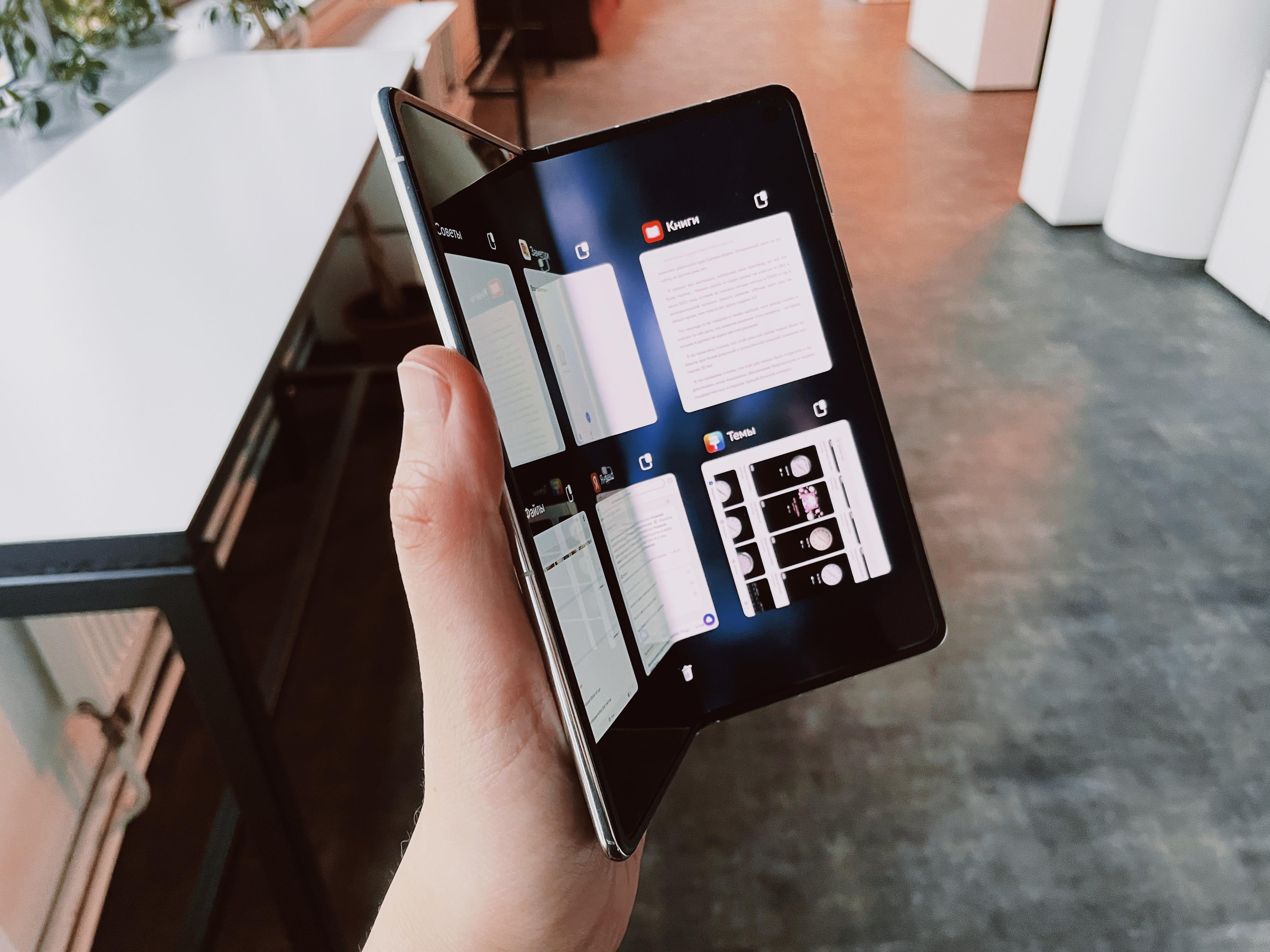 Размеры внутреннего экрана внушают уважение, почти восемь дюймов. Это близко к рекорду. Конечно, форма (прямоугольник с почти равными сторонами, фактически, квадрат) не самая востребованная — для удобного просмотра кино желателен экран с более кинотеатральным соотношением сторон. Зато на смартфоне удобно работать с несколькими приложениями.