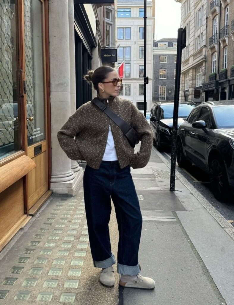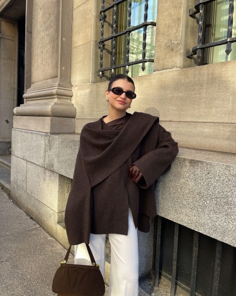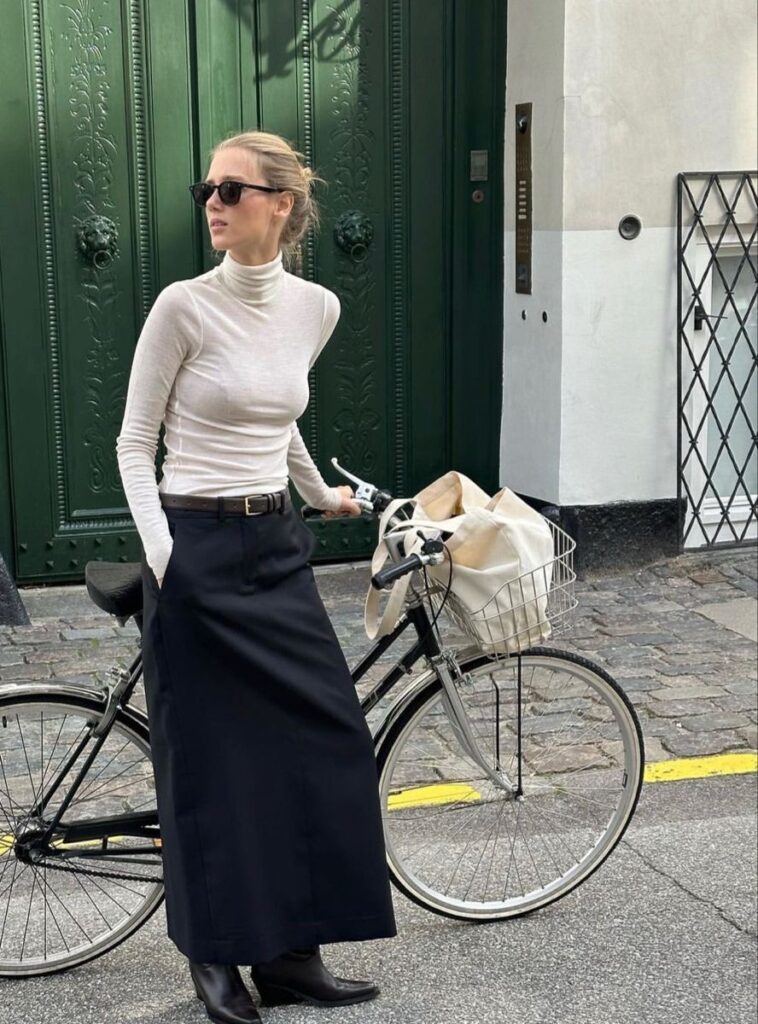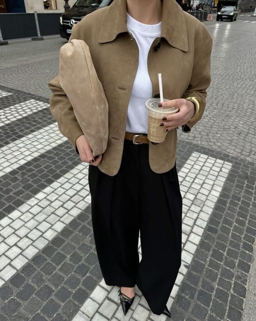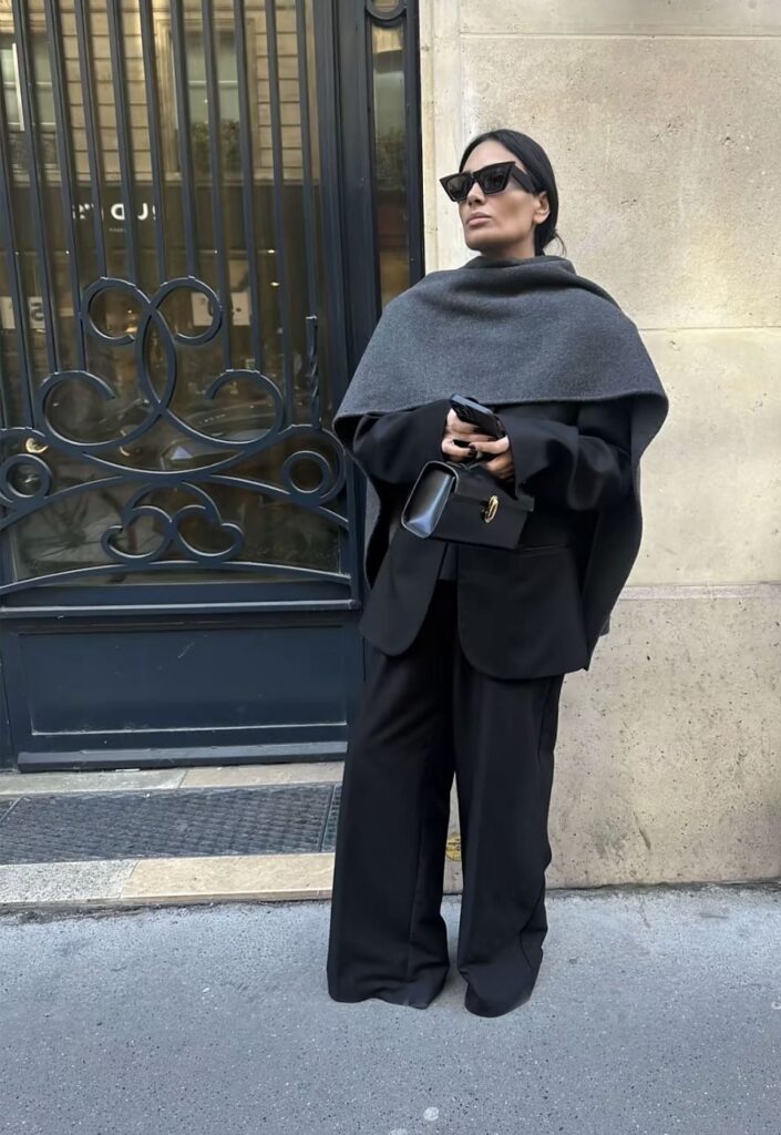 Осенью 2025 года никаких глубоких декольте – фэшн-энтузиасты делают ставку на высокое горло. И мы полностью поддерживаем их решение. В новом сезоне тебе стоит присмотреться к водолазкам, боди, свитерам и аноракам. А если ты готова к экспериментам, советуем взять на заметку прием с поднятым воротником рубашки. Чтобы он держался в таком положении, его можно закрепить булавкой или брошью.