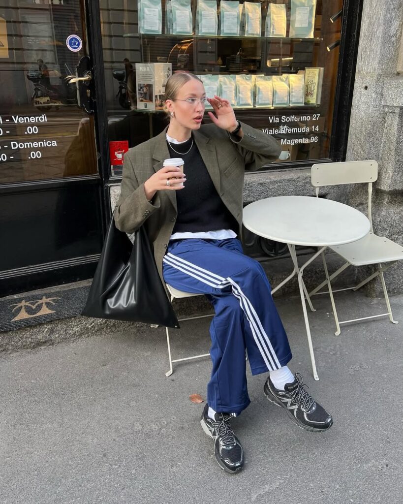 Вот уже несколько сезонов подряд спортивная тематика не отпускает фэшн-сообщество. Поэтому неудивительно, что одним из главных трендов осени стали брюки с узнаваемыми тремя полосками. Правда, не стоит думать, что модные блогеры носят их с худи и кроссовками. Наоборот, стилизация построена на контрасте. Они предлагают нам миксовать спортивки со свитерами, кардиганами и рубашками, а в качестве обуви советуют выбирать лоферы, ботинки на шнуровке или балетки.