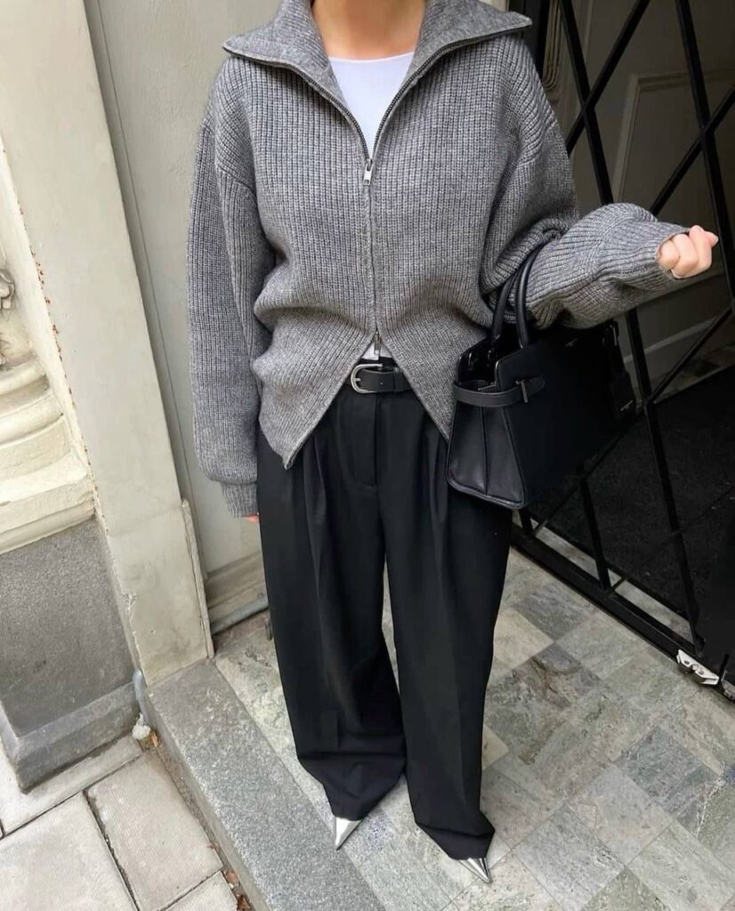 Если в прошлом году на пике популярности были кардиганы на пуговицах, в этом сезоне их заменили модели на молнии и с высоким горлом. Фэшиониста предлагают носить полурасстегнутыми, но не сверху, а снизу. Так, чтобы была видна футболка, лонгслив или рубашка. Что касается цветов, лучше всего придерживаться классической палитры и выбирать серые, черные и коричневые модели. Такие кардиганы самые практичные и круто сочетаются с остальными предметами гардероба.