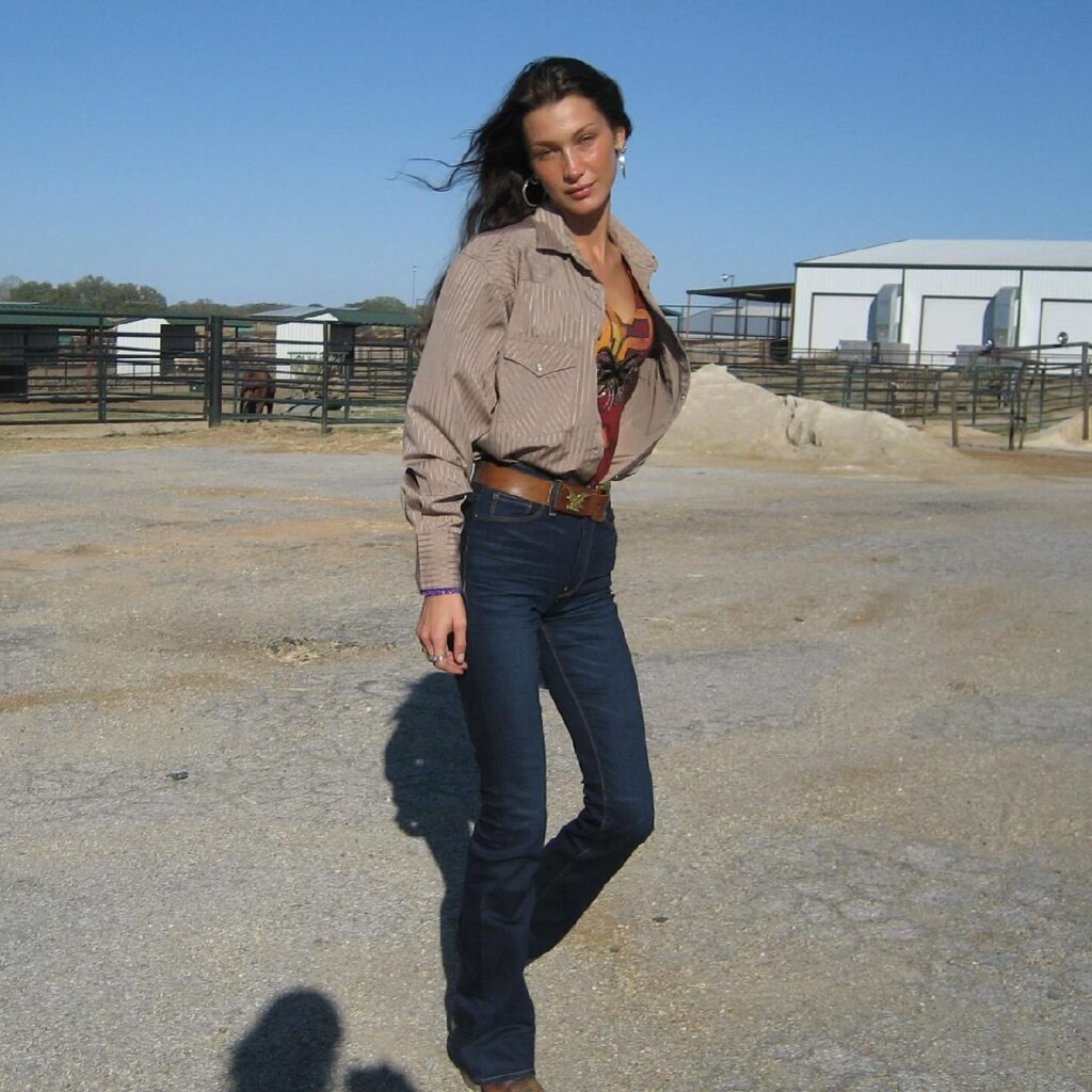 Последние сезоны ряды трендовых эстетик не покидает стиль Coastal Cowgirl, который поддерживают все больше звезд и модных инфлюенсеров. Девушки добавляют в свои образы ковбойские элементы: начиная от замшевых казаков и ремней с крупными пряжками, заканчивая чапсами и рубашками с бахромой. Надо признаться, что такой стиль вовсе не для всех, и внедрить его в привычные базовые образы не так-то просто. Фэшн-блогеры, например, предлагают не перевоплощаться полностью в ту самую девушку ковбоя (привет Белле Хадид), а аккуратно стилизовать некоторые акцентные ковбойские айтемы со своей повседневной одеждой. Показываем идеи аутфитов, которые можно повторить, если хочется прикоснуться к вирусному тренду.