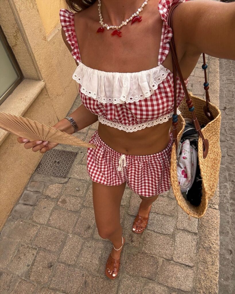 Ну а сейчас модные блогеры полностью изменили правила игры, сделав традиционный паттерн чуть ли не главным трендом лета. Они с огромным удовольствием носят топы, костюмы, брюки, шорты и рубашки в мелкую клетку самых разных цветов: от голубого и зеленого до розового и красного. На популярность принта повлияла и эстетика под кодовым названием cottagecore. Фэшн-энтузиасты составляют нарочито расслабленные «деревенские» образе, но носят их в крупных мегаполисах, умело играя на контрастах.