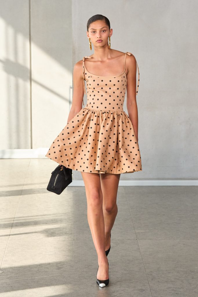 Стиль Babydoll появился еще в середине 1950-х благодаря фильму «Куколка», в котором главная героиня предстает перед зрителями в коротенькой сорочке. После выхода картины девушки начали скупать похожие предметы гардероба, а чуть позже тренд вышел за пределы спален. Стиль Babydoll подразумевает кокетливые платья, романтичные рукава-фонарики и детали вроде бантиков, лент, кружева и принта в горошек. И этим летом он снова вернулся на фэшн-арену. Доказательством тому служат образы с показов Loewe, Carolina Herrera, Versace и Adeam.