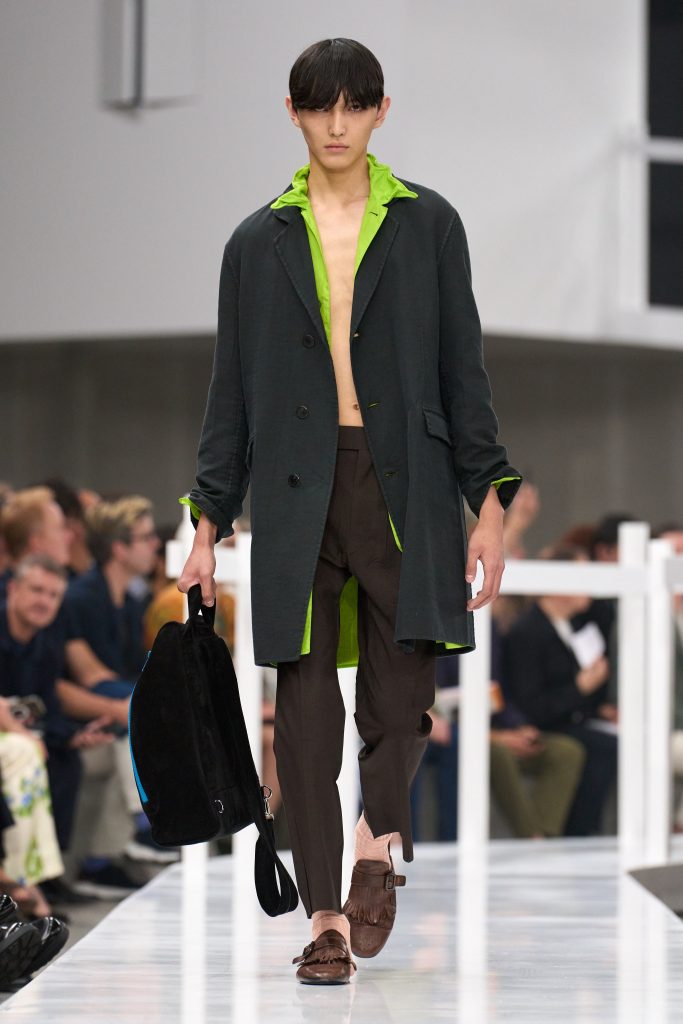 Итак, кажется, в следующем сезоне мы все последуем примеру зумеров и перестанем использовать утюг. Ведь на показах Bottega Veneta, Prada и Ferragamo, прошедших в рамках миланской недели моды, были замечены мятые тренчи, костюмы, брюки и платья. А Миучча Прада и Раф Симонс и вовсе сделали ставку на «сломанные» воротники рубашек.