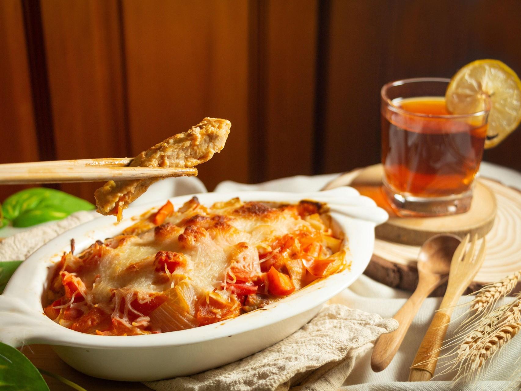 Немного смажьте помидоры майонезом (для снижения калорийности блюда майонез можно заменить на менее жирную сметану) и посыпьте тертым сыром. Сверху еще раз сделайте сеточку из майонеза, но уже погуще: от его количества будет зависеть, насколько мясо получится сочным, особенно если помидоры заменили на томатный соус.