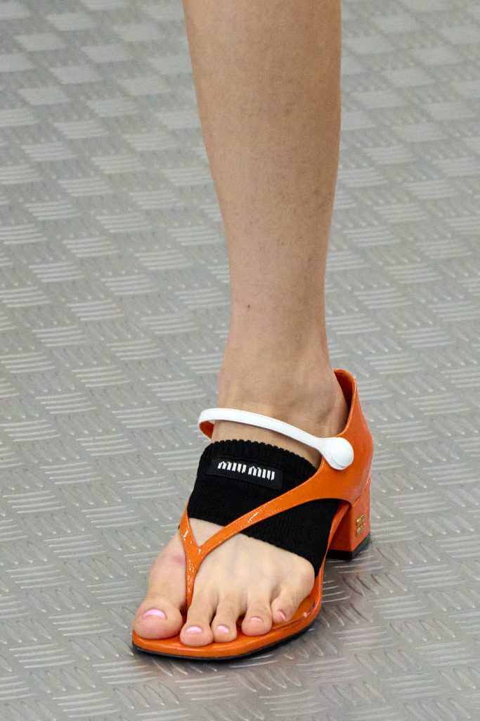 О возвращении туфель peep-toe на мировую фэшн-арену заговорили еще в прошлом году, когда Белла Хадид вышла в них на красную дорожку Каннского кинофестиваля и доказала, что они смотрятся очень круто. Главная «фишка» этой модели – открытые пальцы, и долгое время она считалась стопроцентным red flag для всех представителей индустрии. Однако цикл прошел, и туфли снова вернулись в моду. Мы видим их на показах Tory Burch, Miu Miu, Khaite и Acne Studios.