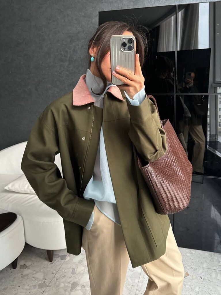 Осень – самое лучшее время года, чтобы носить предметы гардероба природных оттенков. В твоем распоряжении бежевый, коричневый, серый и, конечно, оливковый. Последний, кстати, в этом сезоне будет особенно актуален. Этот темный оттенок зеленого по праву считается благородный и идеально сочетается практически со всеми базовыми цветами. Так что смело выбирай на осень оливковые пальто, стеганые куртки, брюки и костюмы, а еще не забывай про аксессуары и обувь.