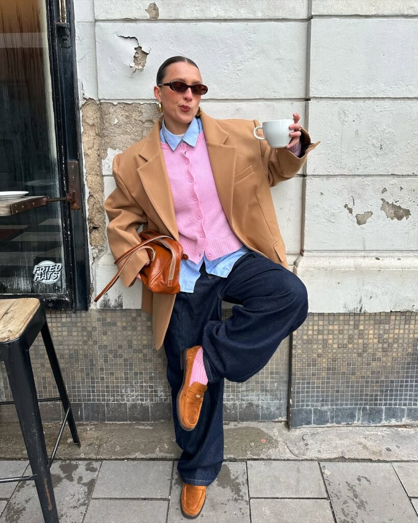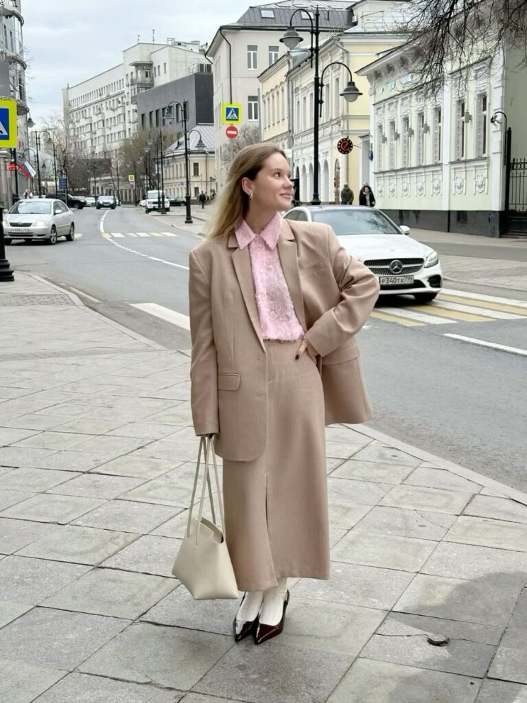 Не самый очевидный цвет для осеннего сезона, особенно в наших климатических условиях. Конечно, покупать розовые брюки, пальто и куртки не совсем практично. Поэтому герои стритстайла и модные инфлюенсеры предлагают переключить внимание на рубашки, лонгсливы, футболки, кардиганы и свитера. Нежно-розовый цвет выигрышно освежит образ и сделает его более нежным.