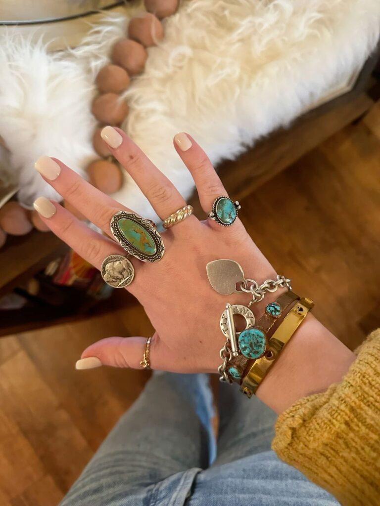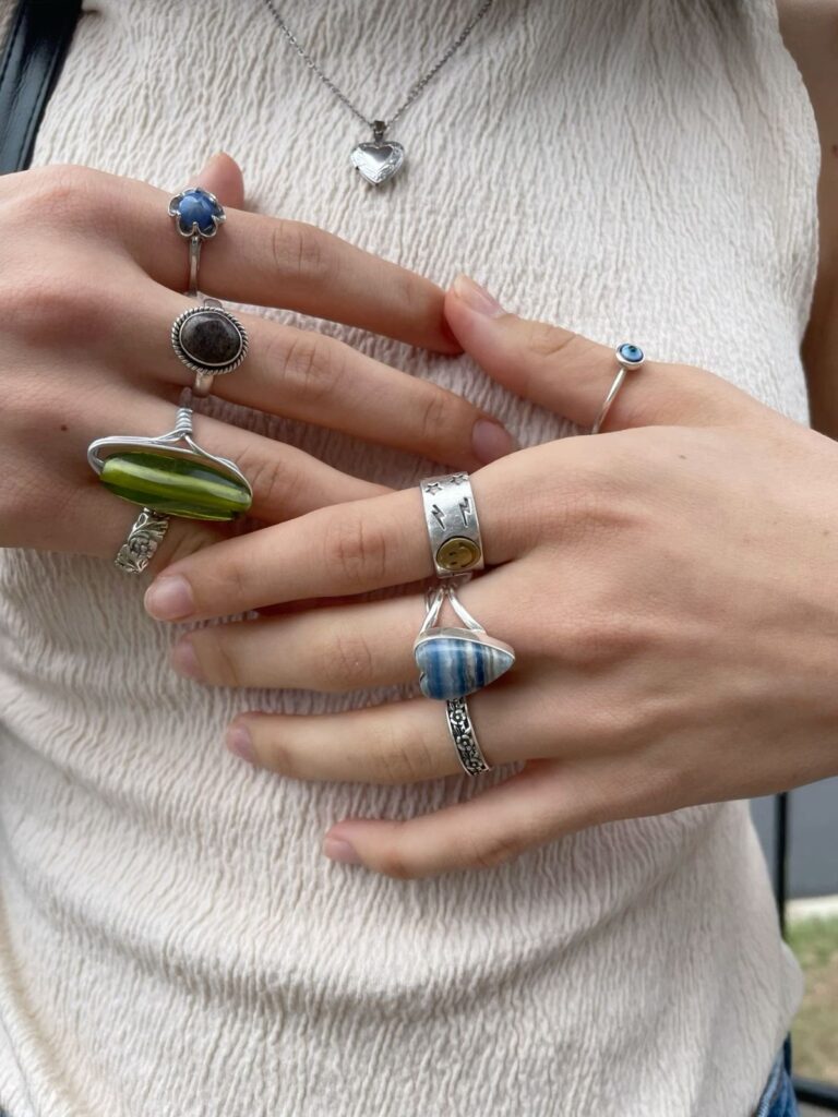 Вытянутая овальная форма, стекло под «бриллиант» и тонкая шинка – кольца-«маркиз» дарили по важному случаю, а потом бережно хранили в шкатулке. Сейчас на такой тип колец из бабушкиной шкатулки обратили внимание герои стритстайла и модные инфлюенсеры. Они носят по несколько штук сразу и миксуют их с другими кольцами. Особенно классно украшения смотрятся на фоне naked nails или хромированного маникюра.
