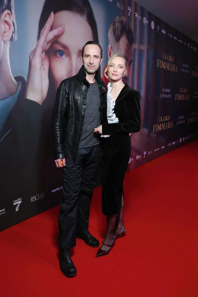 Конечно, не смогли пропустить премьеру и исполнители главных ролей. Екатерина Вилкова выбрала для красной дорожки черное бархатное платье с объемным воланом, а образ дополнила туфлями-лодочками. А вот Евгений Цыганов не стал наряжаться даже по такому радостному поводу и как всегда остался верен стилю кэжуал — лонгслив с принтом, брюки и кроссовки.